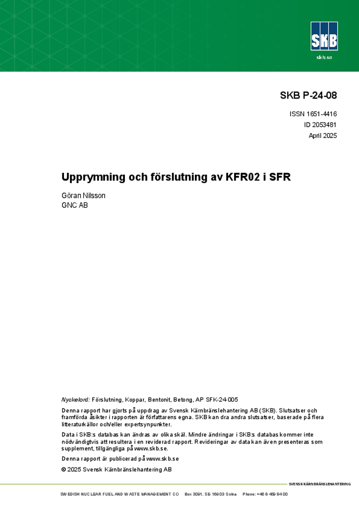Upprymning och förslutning av KFR02 i SFR