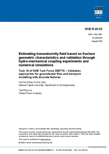 Estimating transmissivity field based on fracture geometric characteristics and validation through hydro-mechanical coupling experiments and numerical simulations. Task 10 of SKB Task Force GWFTS - Validation approaches for groundwater flow and transport modelling with discrete features