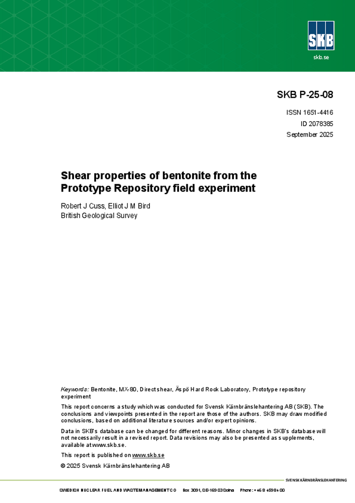 Shear properties of bentonite from the Prototype Repository field experiment