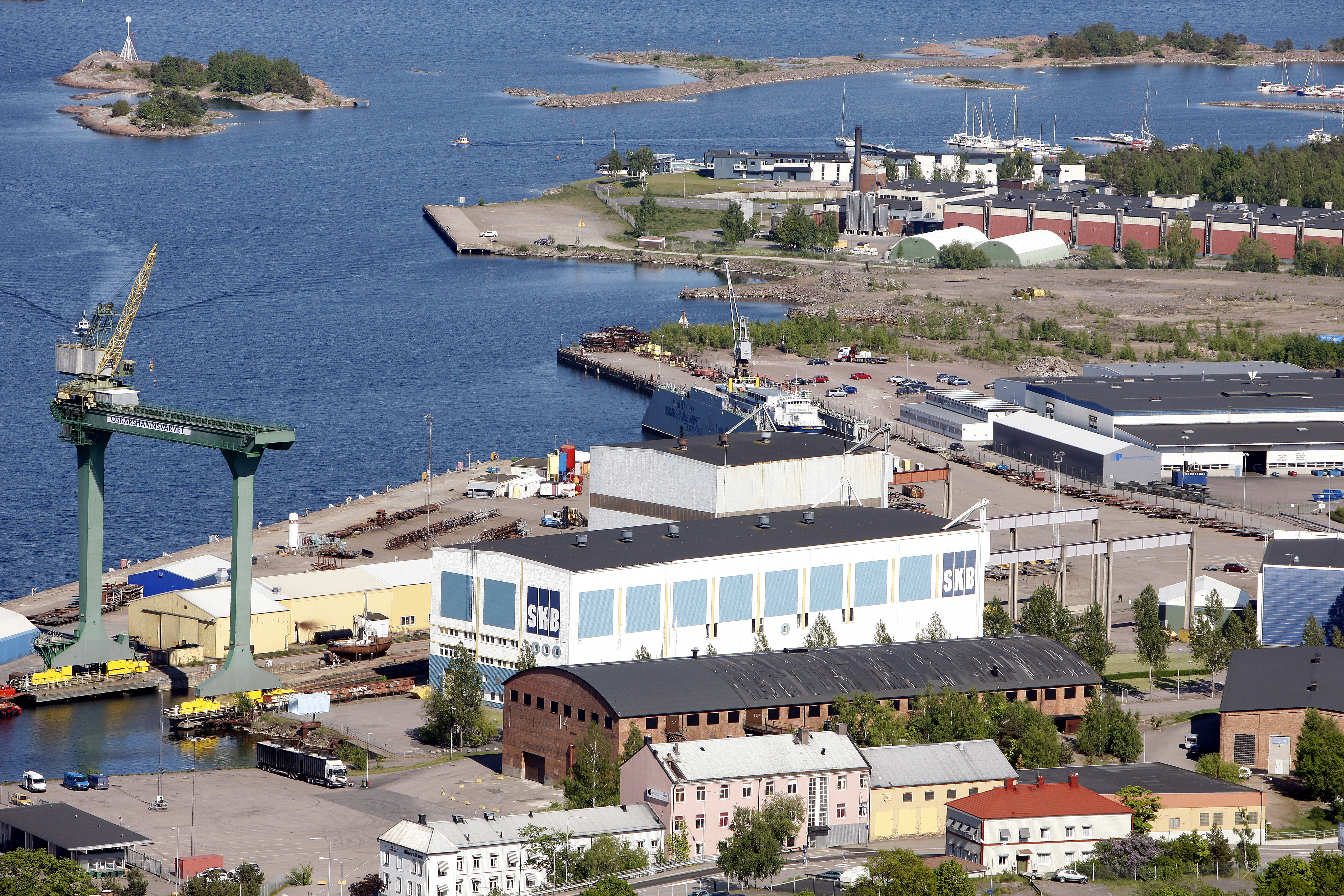 Aerial photograph of the Canister Laboratory at the port of Oskarshamn.