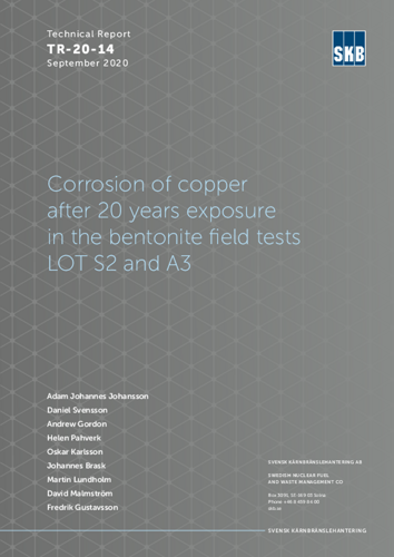 Corrosion of copper after 20 years exposure in the bentonite field tests LOT S2 and A3.